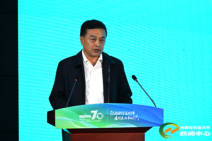 钱永刚表示,此次会议旨在纪念为国家科技事业作出杰出贡献的钱学森先生,弘扬其科学报国精神,激励广大科技与教育工作者心怀“国之大者”,勇担时代使命。他说,内蒙古农业大学2001年设立钱学森沙产业奖学金班,2023年成立钱学森沙产业学院,在培养高素质沙产业人才、推动生态文明建设和经济社会可持续发展方面发挥了积极作用。