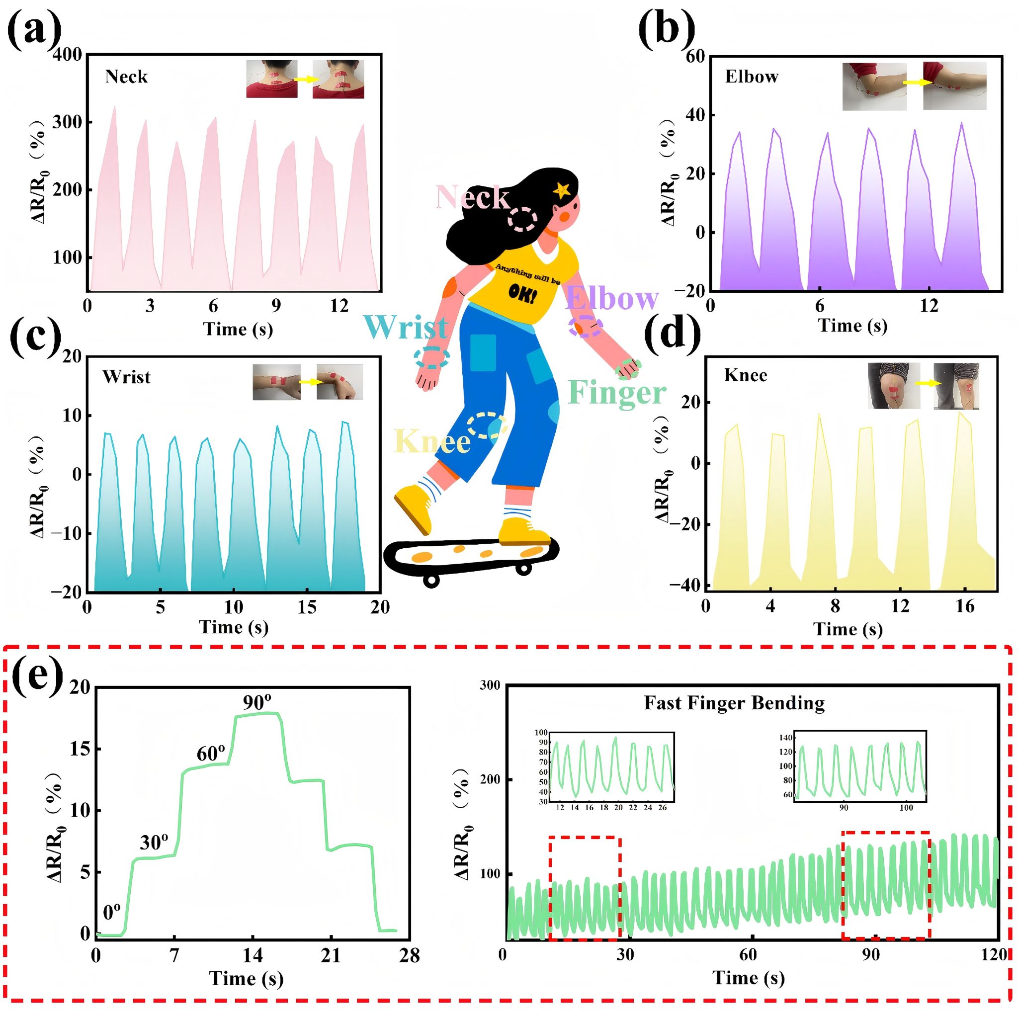 更为关键的是,所制备的木基电子皮肤具备1190 ms的快速响应能力,能精准记录人体运动频率(图3)。这种基于细胞壁纳米工程的合成策略不仅简化了传统电子皮肤的制备工艺,显著提高了制备效率,还为柔性传感器领域带来了新的突破。