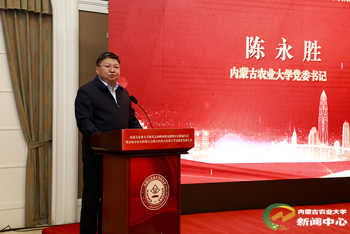 陈永胜在致辞中向赤峰市校友联络分会顺利换届表示祝贺,并介绍了学校近年来围绕争创“双一流”建设高校发展目标取得的系列成绩。他说,校友是母校最靓丽的名片,也是学校事业发展最坚实、最可信赖的力量。赤峰校友在现代农牧业、特色文旅等领域深耕多年,以实际行动诠释了校训精神,为地方经济社会发展作出贡献,也为母校赢得了荣誉。他强调,赤峰“十大行动”中的多个项目与学校优势契合,校友发展空间广阔,学校将持续支持校友成长与发展。他希望新一届赤峰校友联络分会充分发挥桥梁纽带作用,持续充实校友信息库、挖掘校友资源,搭建校友交流合作平台,为母校争创“双一流”高校贡献力量。