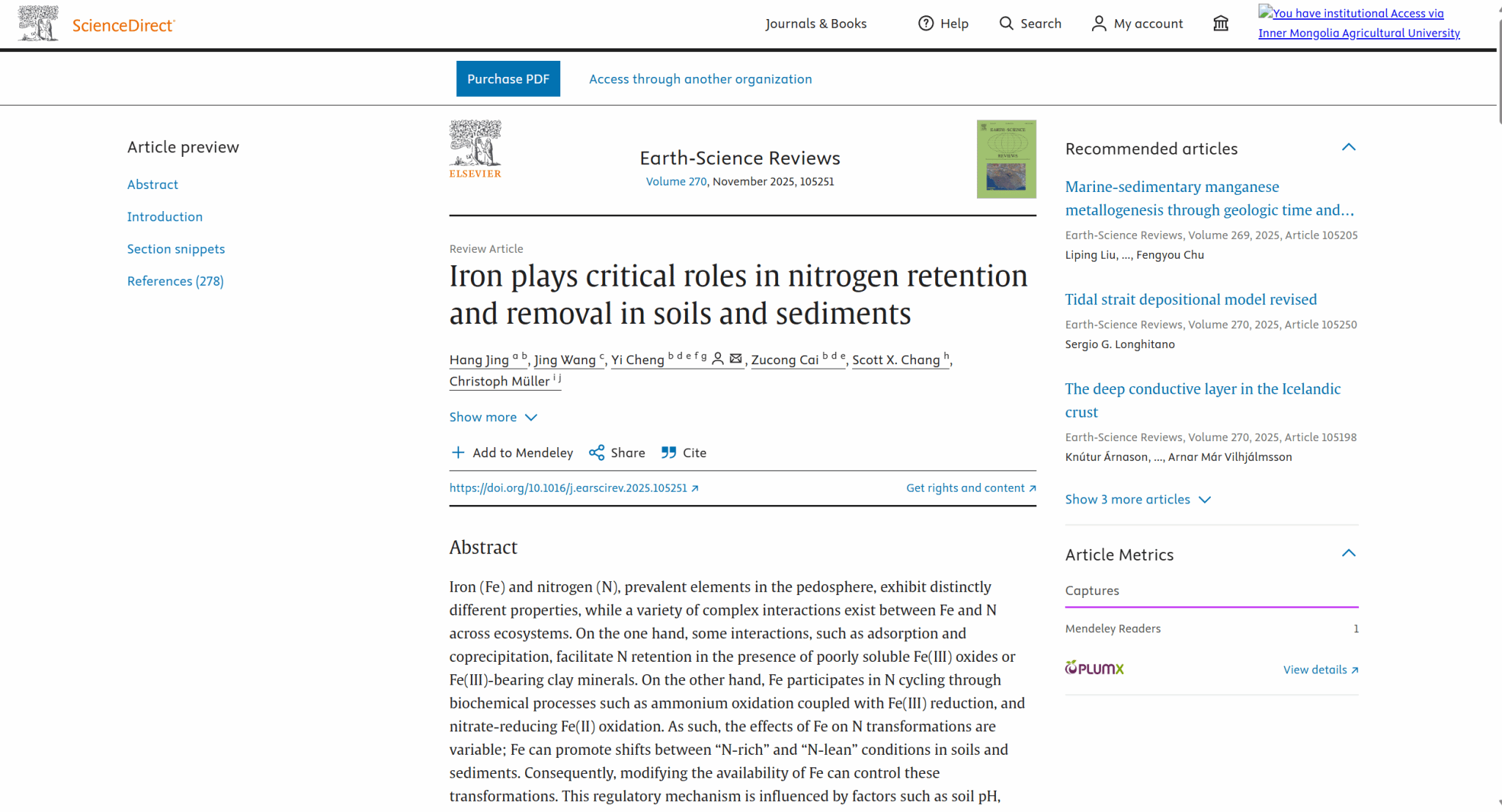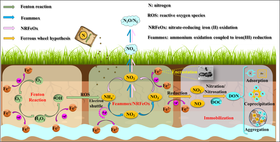 铁是地壳中含量第四丰富的元素,而氮是维持生命和生态系统功能的最基本元素之一。铁氮之间存在复杂的耦合关系,是生态系统中重要的物质循环过程。然而,关于铁氮之间具体的交互过程,相关的影响因素,以及对土壤和沉积物氮素固定流失的作用,尚缺全面和系统的评价。