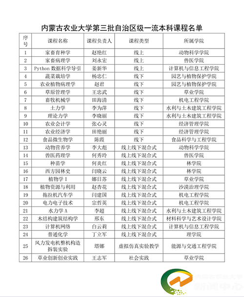 近日,自治区教育厅公布第三批自治区级一流本科课程认定结果,我校26门课程成功入选。