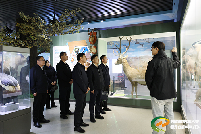 会前,王波一行参观了我校草原野生动物馆、国家级植物学实验教学示范中心、校史展览馆及农业微生物国家种质资源库。