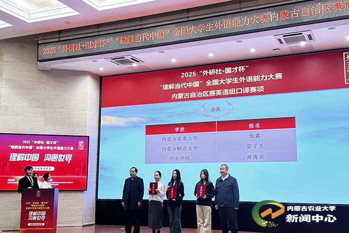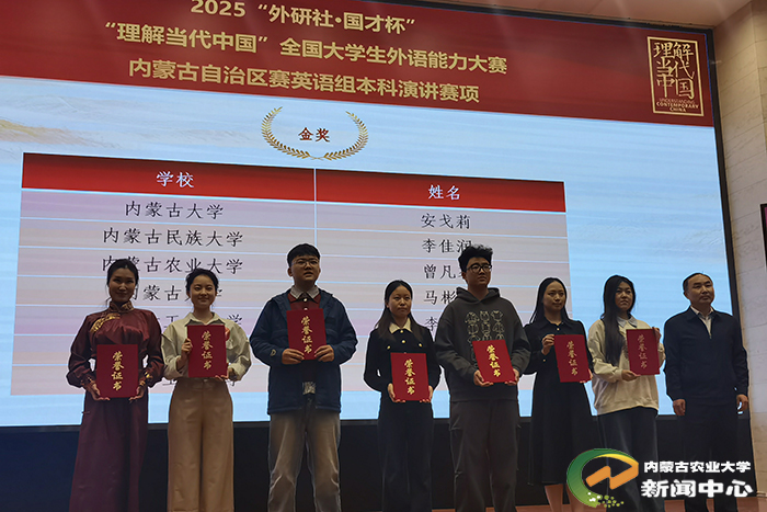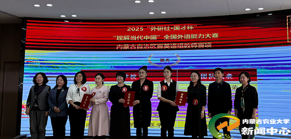 近日,2025年“外研社·国才杯”“理解当代中国”全国大学生外语能力大赛内蒙古赛区决赛落幕。我校师生表现优异,共获得金奖3项、银奖4项、铜奖13项,2名学生将代表自治区参加全国总决赛。我校荣获“优秀组织奖”。