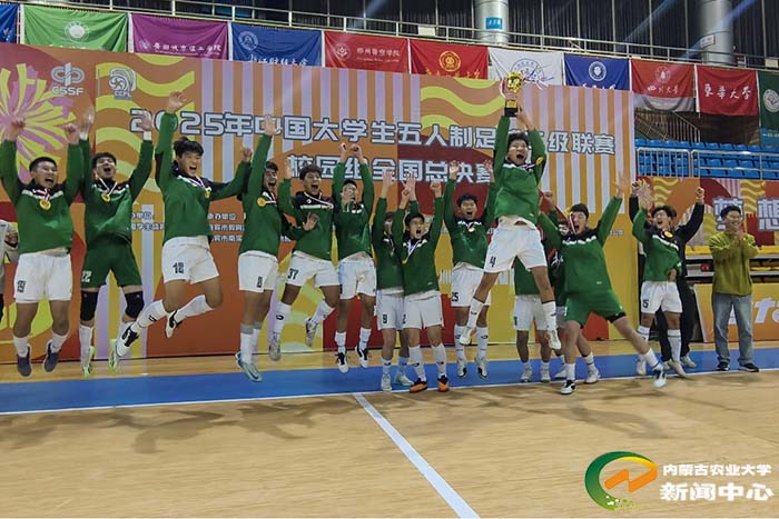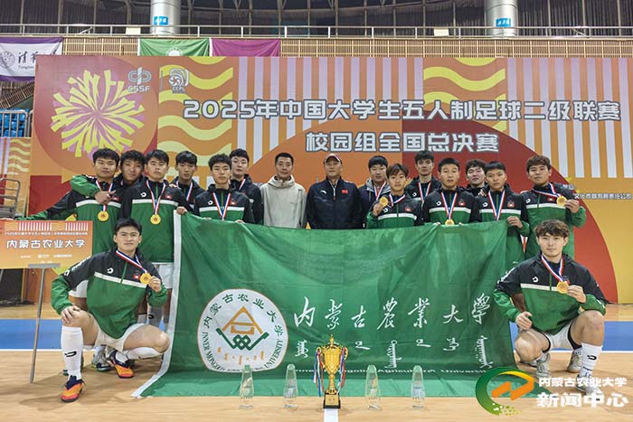 11月19日晚,从四川宜宾传来捷报,在刚刚落幕的2025年中国大学生五人制足球二级联赛(校园组)全国总决赛中,我校足球队以3:2力克浙江财经大学队,成功夺冠。此役不仅捧起了首届全国五人制足球联赛(校园组)冠军,同时获得了本次赛事“最佳领队”“最佳教练员”“最佳运动员”“最佳守门员”四个奖项,创下了内蒙古大学生足球历史上首个全国冠军的辉煌纪录,浙江财经大学队获得亚军,清华大学队收获季军。