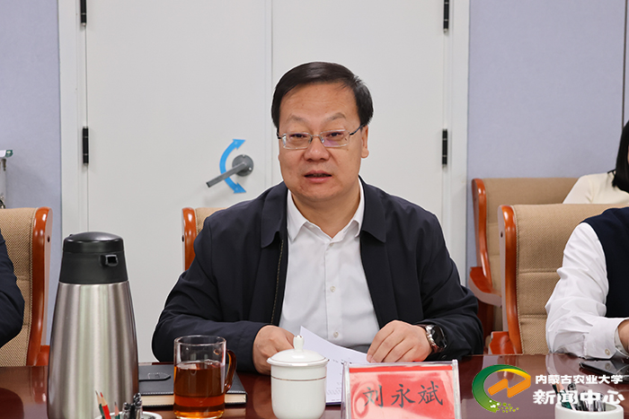 刘永斌对吴云一行的到访表示欢迎,并介绍了学校的发展历程与现状。他说,学校办学历史底蕴深厚,在种业创新、肉羊产业、饲草料研发、智慧农业、生物育种等技术领域积累了扎实基础,与伊金霍洛旗的发展需求高度契合,合作潜力巨大。学校将充分发挥学科与人才优势,与伊金霍洛旗政府及相关企业携手探索合作新模式,不断拓宽合作的广度与深度。学校将深入贯彻落实党的二十届四中全会精神,积极服务乡村振兴战略,共同推动农业向高质量、绿色可持续方向发展。齐景伟介绍了学校在学科建设、师资队伍、科研平台与人才培养等方面的综合优势,并重点分享了近年来在农牧业领域取得的突出成果。