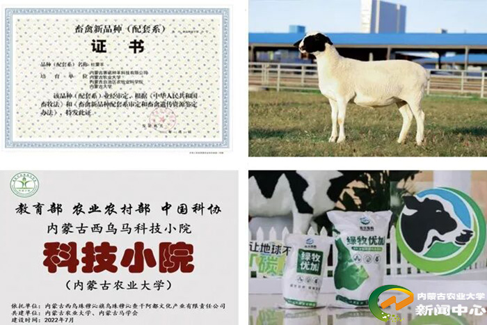 学院围绕优势学科方向组建科研创新团队,在生物育种、生态高效养殖、植物添加剂研发等领域积极培育科技成果。培育“杜蒙羊”新品种1个,参与培育“华蒙肉羊”新品种1个。智慧养殖及生物饲料技术创新团队转化4项发明专利,转化金额50万元;与内蒙古优然牧业有限责任公司合作研发的首款减碳增产饲料“绿牧优加”在北京发布。学院加强与地方合作,积极推动科技小院建设,获批教育部、农业农村部、中国科协科技小院1个,中国农村专业协会科技小院5个,实现了科研成果与产业实践的深度融合。
