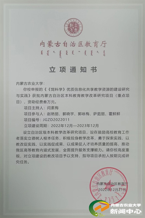 【编者按】奋进“十四五”,内蒙古农业大学胸怀“国之大者”,以立德树人为根本、以强农兴农为己任,深化改革、砥砺前行,推动学校事业发展实现新跨越。学校持续完善人才培养体系,着力培育知农爱农的新型卓越人才;面向国家重大战略需求,全面提升科研能级,在关键核心技术领域取得重要突破;强化学科内涵建设,优化布局、彰显特色;扎根北疆大地,倾情服务农牧民,有力赋能区域经济社会发展;广泛汇聚优秀人才,不断夯实高质量发展根基,学校综合实力和办学水平得到全面提升。