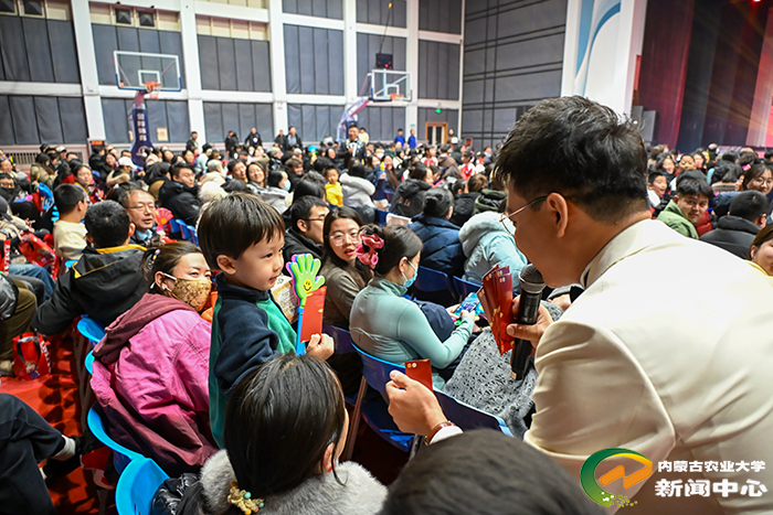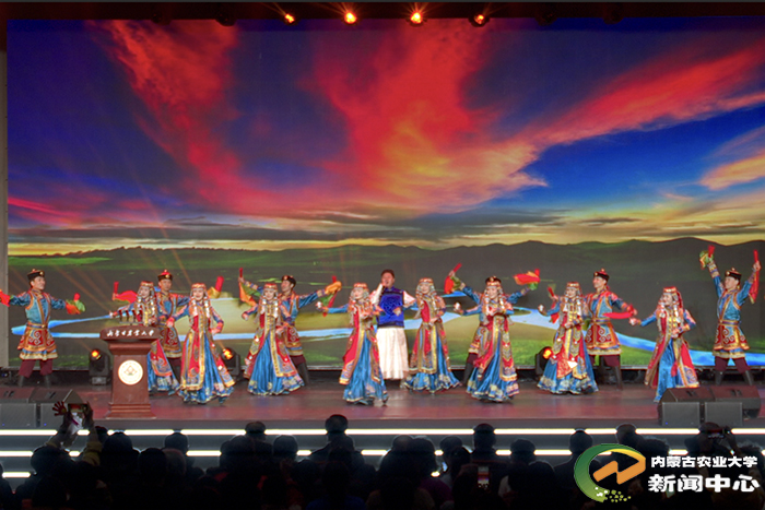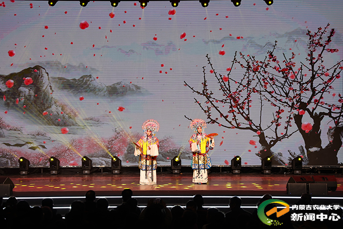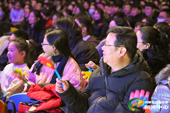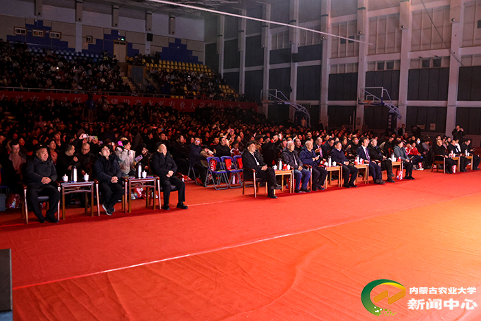 12月26日晚,我校“骐骥深耕 沃野潮涌”迎新年文艺晚会在西区体育馆举办。校党委书记陈永胜,党委副书记、校长刘永斌,校党委原副书记、校关工委常务副主任郑俊宝,校原副校长侯先志,校原副校长、老教授协会会长李金泉,副校长塔娜,党委委员、副校长齐景伟,党委委员、纪委书记褚亚申,党委委员、副校长陆海平、董同力嘎,副校长张超群,党委委员、职业技术学院党委书记韩瑞平、院长那森巴雅尔,以及内蒙古艺术剧院京剧团团长张莹,呼和浩特校友会筹委会负责人李光辉等出席晚会,与全校师生共迎新年。