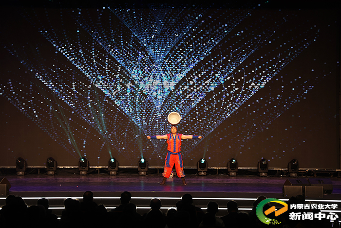 晚会在激昂的开场舞《赞歌》中正式拉开帷幕。本场晚会由我校与内蒙古艺术剧院携手打造,汇聚多样艺术形式,为师生呈现了一场高水平的视听盛宴。梨园经典《梨花颂》《梨园风采》韵味悠长,尽展国粹艺术之美;呼麦弹唱《江格尔赞》与舞蹈《吆赫尔》雄浑豪迈,传递出草原文化的独特魅力;杂技《顶坛》技艺精湛,惊险震撼;歌曲串烧与舞蹈《中华手拉手》热情洋溢,生动诠释了民族团结的恢弘气象。演出过程中穿插的互动抽奖环节,更不断点燃现场热情,将晚会气氛推向高潮。
