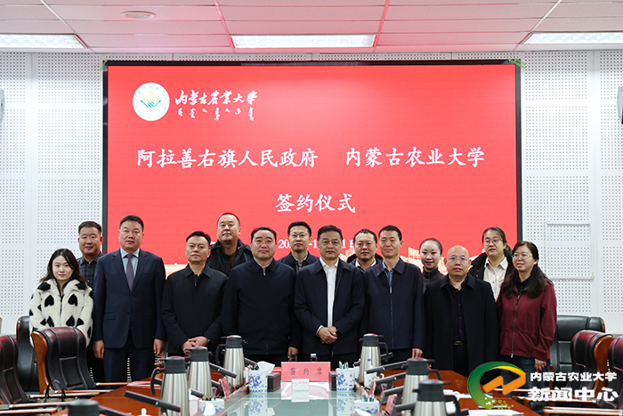 燕山介绍了阿拉善右旗驼产业的发展现状与规划。他说,阿拉善右旗拥有丰富的骆驼资源,驼产业已形成一定的产业基础和发展潜力,但在良种繁育、数字化养殖、产品深加工等方面仍面临技术瓶颈,内蒙古农业大学在畜牧产业领域的科研实力和人才优势,正是阿拉善右旗驼产业发展所急需的。此次合作是阿拉善右旗人民政府推动特色产业高质量发展的重要布局,旗政府将全力支持校地企三方合作项目的推进,为科研攻关、成果转化提供优质服务和政策保障,希望以此次签约为契机,进一步拓展合作领域、深化合作内涵,借助学校的科技赋能,让驼产业成为带动当地经济发展、促进牧民持续增收的“黄金产业”。