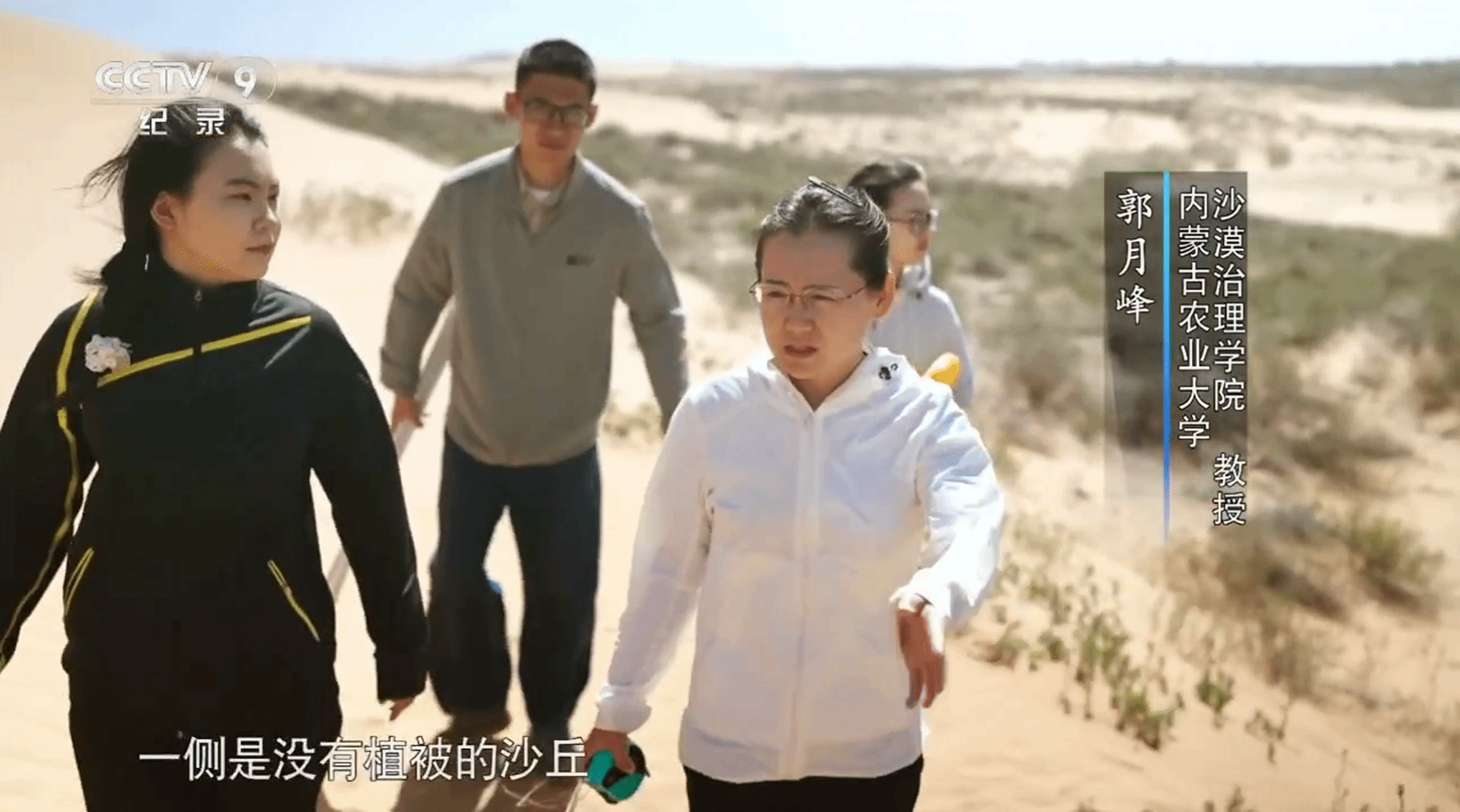 CCTV9《弓弦上的春天》第一、二集,生动记录了我校教师团队以“科技赋能,系统治理”为主题,呈现了我校教师在荒漠化防治领域的多维创新实践。其中,沙漠治理学院教授蒙仲举立足生态安全与能源发展需求,聚焦光伏电站的沙害防治难题,创新构建了“光伏阵列防风固沙”技术体系。通过将光伏基础设施与生态治理的有机结合,形成了“以光锁沙、以板固土”的协同机制,既有效促进了地表植被恢复与风沙控制,又实现了生态保护与绿色能源产业的深度融合与共赢发展,为干旱区可再生能源项目的可持续建设提供了可复制、可推广的系统解决方案。沙漠治理学院教授郭月峰则秉持生态治理初心,扎根沙区一线,专注研究荒漠植被与土壤系统的协同恢复。她带领团队基于乡土植物筛选与生态适应性原理,通过科学的植被配置与生境调控,激发植物自身抗逆性与群落演替潜力,从而推动沙地生态系统实现从“人工干预”到“自主恢复”的可持续转变,为干旱区生态修复提供了可操作的技术路径与实践范式。