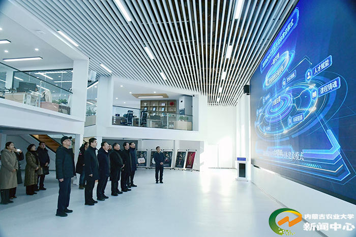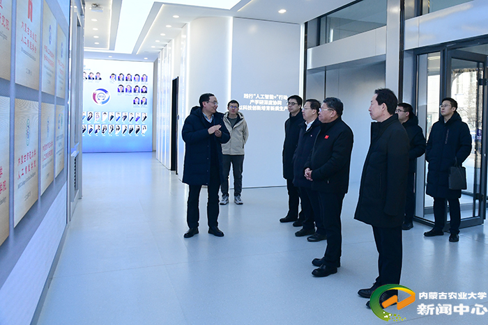 会前,陈永胜、刘永斌一行在李树林、张军等陪同下,实地考察了内蒙古师范大学中华民族共同体建设与边疆治理智能实验室、智能楼AI驾驶舱实验室、国家民委中华民族共同体研究基地、铸牢中华民族共同体意识实践成果展,详细了解相关平台建设、科研创新、成果转化及实践育人等情况。
