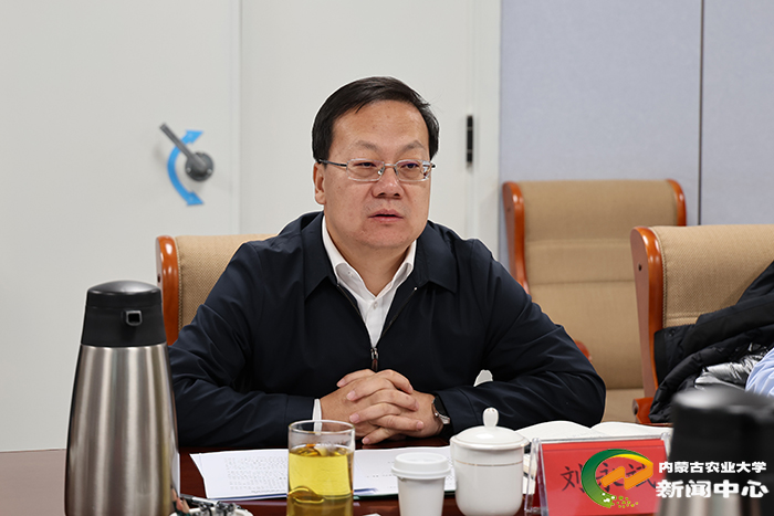 刘永斌代表学校对孙昊一行的到来表示欢迎,并介绍了我校在畜牧养殖领域的学科优势、科研成果及人才培养情况。他说,学校作为自治区农牧业领域的龙头高校,长期深耕肉羊遗传育种与生产技术领域,在育种平台构建、养殖设施研发、农畜产品深加工等方面积累了深厚基础,学校将充分发挥肉羊产业技术体系团队优势,聚焦养羊产业数智化转型核心需求,搭建产学研用协同创新平台,同时,希望以此次座谈会为契机,助力首府养羊产业提质增效,为乡村振兴注入更强动力。