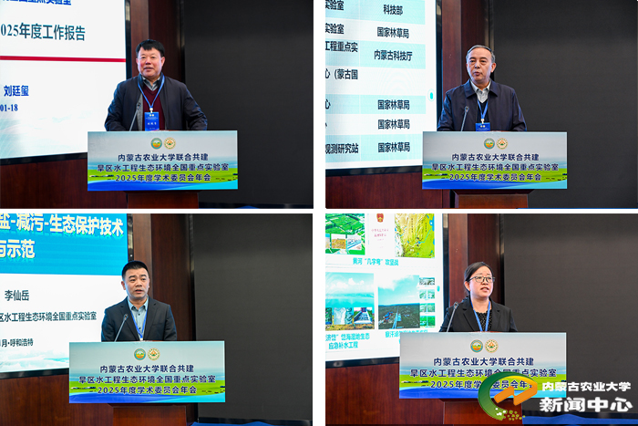 年会上,实验室负责人刘廷玺教授作2025年度工作报告,汇报了实验室在科研项目、成果产出、团队建设和开放交流等方面取得的突出进展。李仙岳、史小红、左合君教授分别围绕“黄河宁蒙灌区节水-控盐-减污-生态保护技术研究与示范”“寒旱区河湖湿地水资源-水环境-水生态三水融合机制与复苏方法”“北方风沙带荒漠化防治与生态安全”作学术报告。